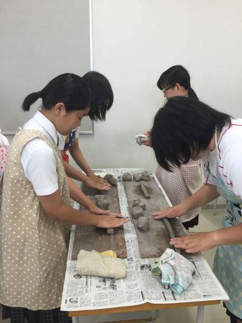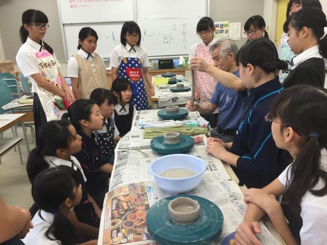 7月19日(日)、外部講師の西田多実雄先生をお迎えして,抹茶茶碗作りに挑戦しました。茶道を総合的に学習しようという取り組みの一環で、生徒たちは慣れない粘土とろくろに苦戦しながら、普段使っているお茶碗がどのように作られるのか実感できたようでした。今回作ったお茶碗は、9月の学園祭でのお茶会で使用します。今後も和菓子作りなどを計画しています。