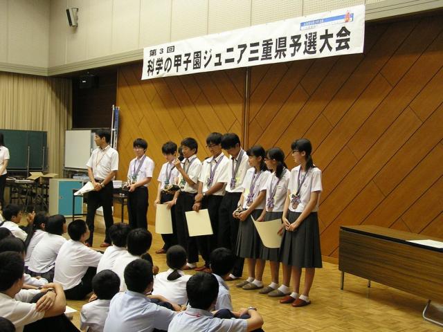 8月8日(土)に三重県総合教育センターにて「第3回科学の甲子園ジュニア三重県予選大会」が開催され、三重中学より3チームが出場しました。(参加校24校、出場チーム42チーム)午前より筆記競技、昼食後実技競技(画用紙で橋を作成するのがテーマ)がおこなわれました。結果は三重中Bチームが総合準優勝を受賞しました。三重中Bチームは、全国大会までに暁中学Aチームとの合同練習を行い、12月4日(金)~12月6日(日)に合同チームとして全国大会(BumB東京スポーツ文化館)に出場します。