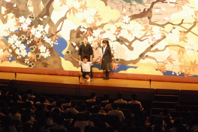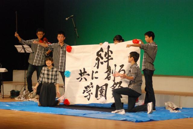 ![]() オープニングは、生徒会メンバーによる書道パフォーマンス |