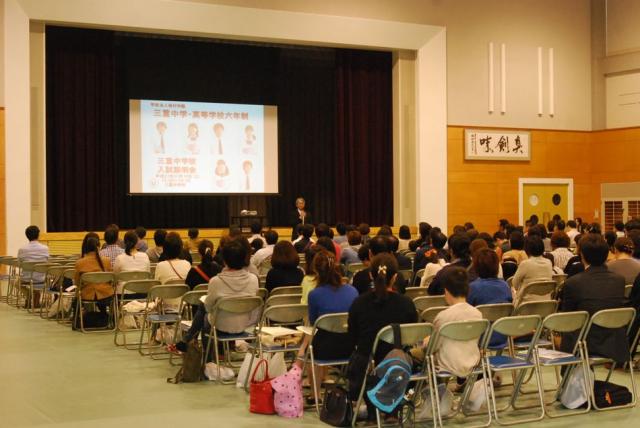 10月10日(土)に平成28年度生徒募集の学校説明会が本校にて行われました。プログラムは最初に学校紹介DVDを見て、その後、中学校長からの挨拶と中学主任からの挨拶がありました。その間、児童のみなさんは、ワークショップに参加しました。ワークショップでは、教科担当者よりの過去問を使っての問題解説と勉強の仕方などの練習を行いました。ワークショップ終了後、児童と保護者の方は一緒に、平成28年1月11日の行われる入試に関する説明を聞き、校内レストラン『ディスコランテ』にて、お茶を飲んで校内見学をしていただきました。多数ご参加いただき、本当にありがとうございました。