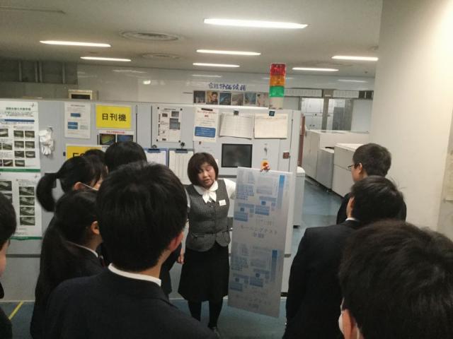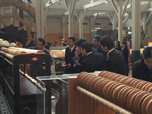 2年生が進路指導のキャリア教育の一環として、社会見学を行いました。2クラスずつ2班に分かれ、2月10日(水)と12日(金)に、名古屋市の「トヨタテクノミュージアム 産業技術記念館」と北名古屋市の朝日新聞の印刷をしている「朝日プリンテック 名古屋工場」を見学してきました。