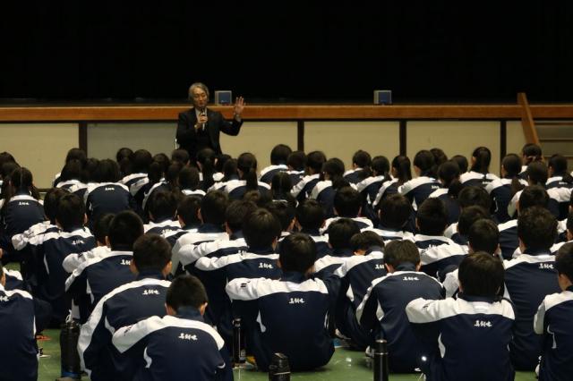 平成28年4月13日~14日、オリエンテーション宿泊研修が行われました。1日目は昼食から始まりました。友達とレジャーシートを寄せ合って、お弁当を楽しく食べました。その後、入所式、開校式がありました。中学校長先生から「命」のお話をいただき、生徒は集中して聴いていました。その後、集団行動、校歌練習がありました。一生懸命練習し、覚えたての校歌をクラス毎に発表しました。夕食・入浴後に教頭先生の講話を聴き、その後、クラスミーティングを経てクラスの団結力を高めました。2日目は、起床後に皆でラジオ体操を行い、気持ちのいい一日のスタートとなりました。朝食後、クラス対抗でスポーツレクリエーションを行い、大いに盛り上がりました。いろいろな種目に挑戦し、心をひとつにして頑張ることができました。レクリエーションを通して、学年全体で親睦を深めることができました。閉校式、写真撮影、昼食の後、バスで三重中学校へと無事帰着しました。