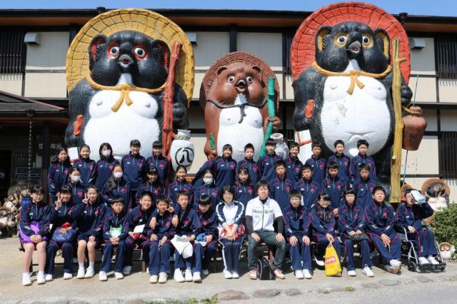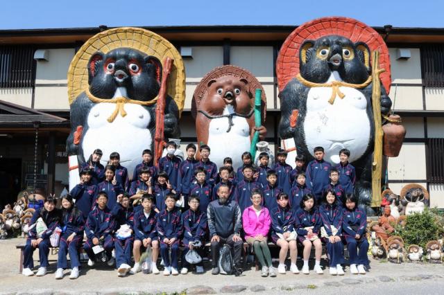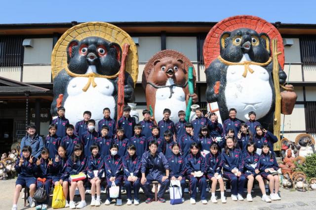4月19日(火)滋賀県の「信楽陶苑」たぬき村に春の遠足で行きました。天気にも恵まれ、遠足日和となりました。それぞれバスの移動時間では、レクレーションを企画したクラスなど、新しい仲間と交流を深めました。たぬき村に着くと、大きな三体のたぬきに出迎えられ、陶芸体験をしました。事前に考えたデザイン画をもとに、お椀やお皿、コップ、花瓶など思い思いの作品を作りました。
