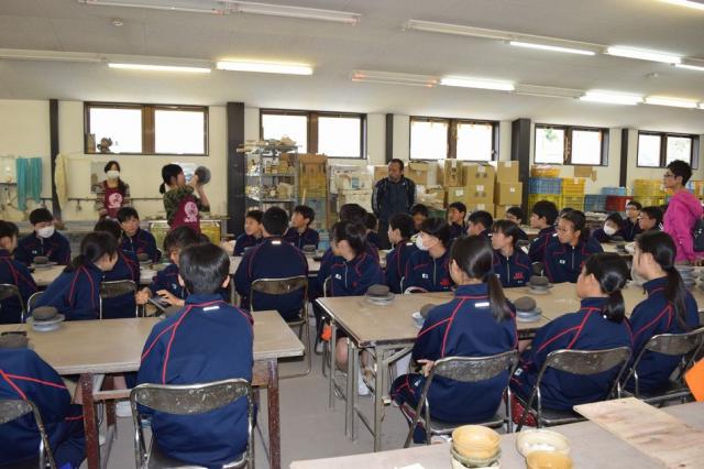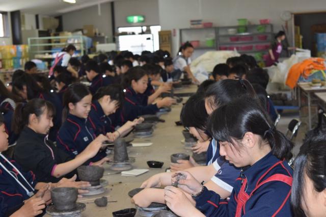午後の信楽産業展示館では学芸員の方より信楽焼についてのお話をききました。茶道とともに発展してきた歴史や、現代では岡本太郎の太陽の塔に陶器が使われているなど、生徒たちは熱心に聞き入っていました。