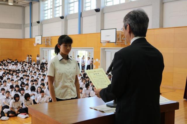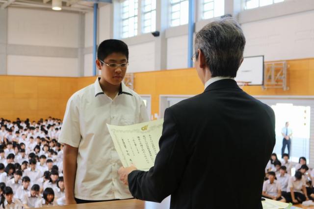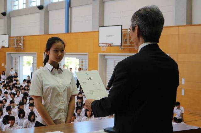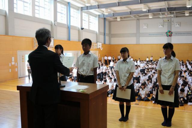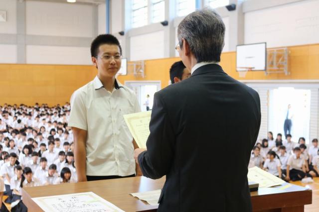 8月30日(火)2学期の始業式が行われました。校長訓辞の後、夏休みに活躍した六年制の生徒の伝達表彰式が行われました。主な表彰者は次の通りです。