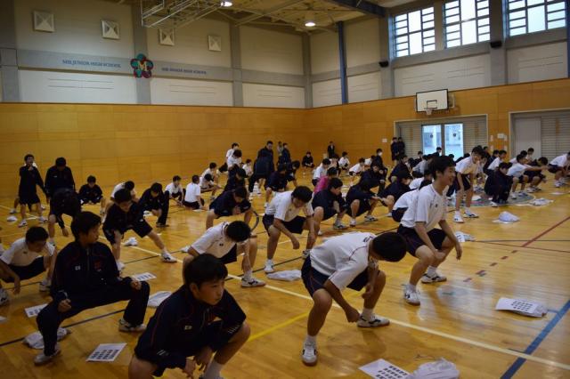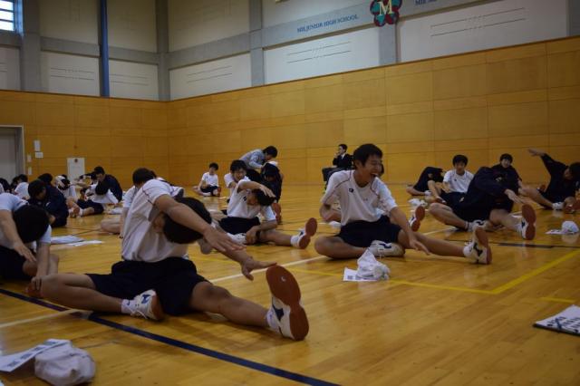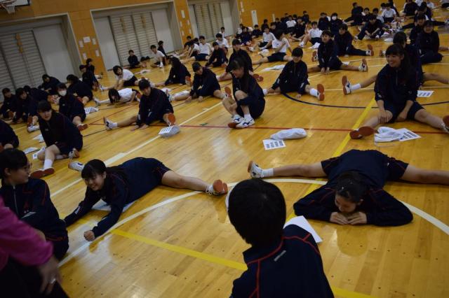 1人で出来るストレッチからペアで行うエクササイズなど実際に体を動かしながら学びました。生徒たちは積極的に手足を伸ばしストレッチの有用性を体感していました。
