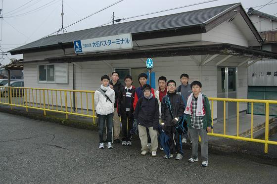 実は以前、三重高等学校の鉄道研究部の先輩が『鉄路』という本にまとめた縁もあり、現在その記録を再検討し、また、今の廃線跡の状況を記録することを、クラブ活動の一環で行なっています。今回は、廃線跡を実際に歩いて調査しようということで、学校→篠田山→大石の約20kmを歩きました。途中、線路が走っていた跡、橋の跡やなごりを発見することが出来、朝9:00出発で昼15:00には大石に無事到着しました。