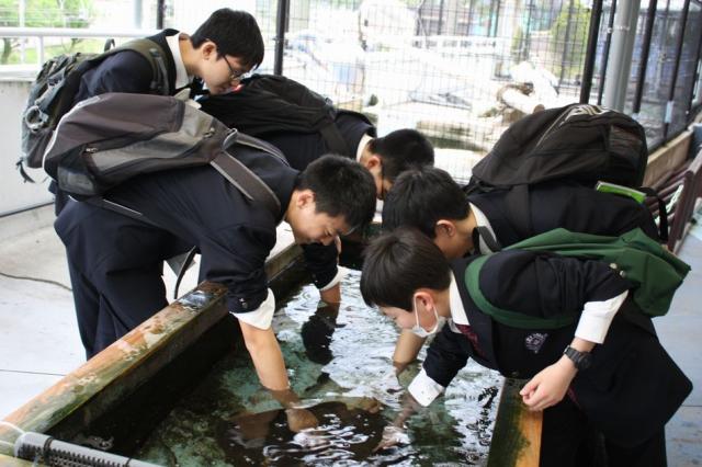 鳥羽水族館では、バックヤードツアーに参加しました。普段見ることの出来ない水族館の裏側を見学する体験は驚きの連続でした。生き物を健康に管理していくことの大切さや苦労を目の当たりにすることができ、水族館スタッフの方のお話は強く印象に残りました。