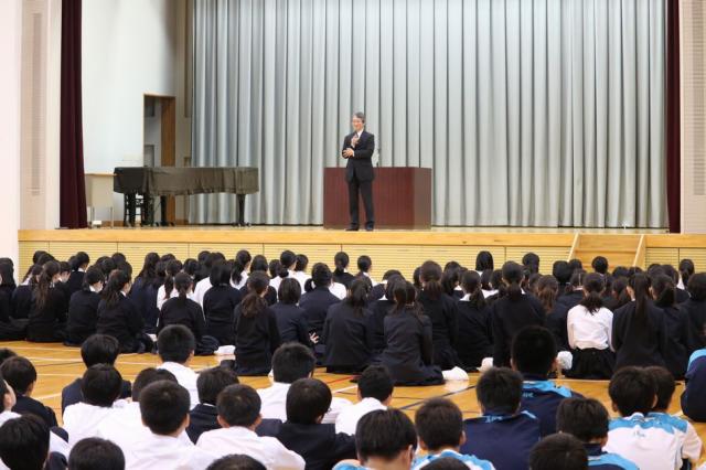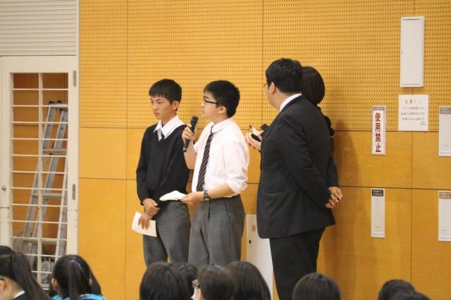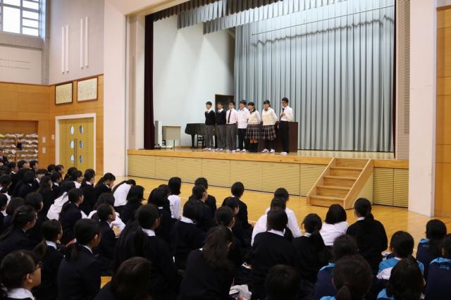 5月13日(土)に松阪市中学校総合体育大会の壮行会が行われました。新しいメンバーでの最初の試合となるクラブも多いようで、試合に対する意気込みを代表生徒が発表しました。続いて、前期生徒会役員の任命式があり、それぞれ役員の所信表明ありました。