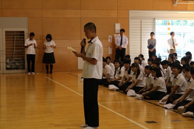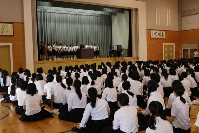 9月25日(月)に本校に来ているBGGS歓迎会が行われました。日本語と英語での司会進行から始まり、生徒会長が英語で歓迎の言葉を述べました。