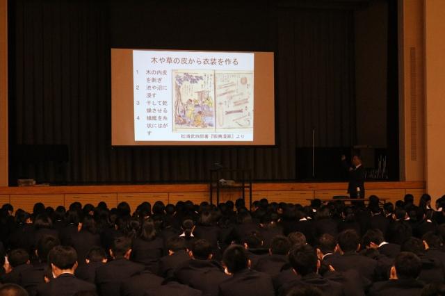 3月13日(火)全学年を対象に、松浦武四郎記念館主任学芸員の山本命さんをお招きし、特別講演を行いました。平成30年(2018)は、武四郎の生誕から200年を迎えるメモリアルイヤーであり、北海道にとっても武四郎の提案に基づき蝦夷地が北海道に改称されてから150年目の節目を迎える年でもあります。本校では、是非ともこの機会に松浦武四郎の生き方を学んでほしく、講演を企画しました。