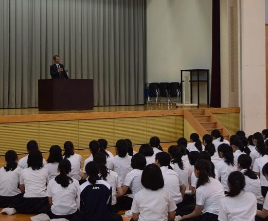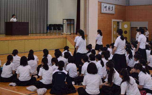 7月6日(金)に松阪市中学校総合体育大会の壮行会が行われました。3年生にとっては最後の試合になるクラブも多く、試合に対する意気込みを各クラブ代表生徒が発表しました。また最後に校長先生と生徒会長からの激励の言葉もあり、部活生一同真剣に耳を傾けていました。