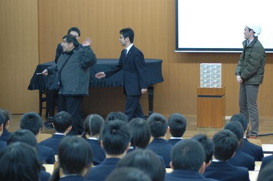 2月4日(水)に3年生の社会科特別授業『租税教室』が行われました。東海税理士会松阪支部から4人の税理士の皆さんに来ていただき、寸劇と映像を通して税金の大切さを学びました。