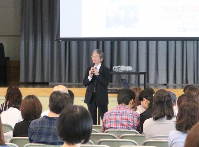 10月7日(日)に平成31年度三重中学入学試験説明会が本校にて行われました。約300名の保護者・児童の方にご参加いただき、盛況のうち無事終わることが出来ました。プログラムは、最初にダンス部のパフォーマンスを見ていただきました。その後、学校紹介DVDを上映し、中学校長からの挨拶と、新しく大学入試が変わることをふまえ、教務から英語教育における本校の取り組みについての説明がありました。