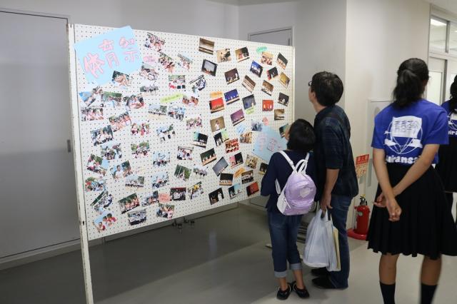 説明会終了後には、生徒会主催による「ガイドウォーク」がありました。化学では実験を体験、美術室では作品展示を見て頂きました。その他、生徒会活動の紹介や学園祭のオープニング動画の上映が行われました。また、廊下では体育祭や学園祭など学校生活の展示がありました。多くのご来場、誠にありがとうございました。