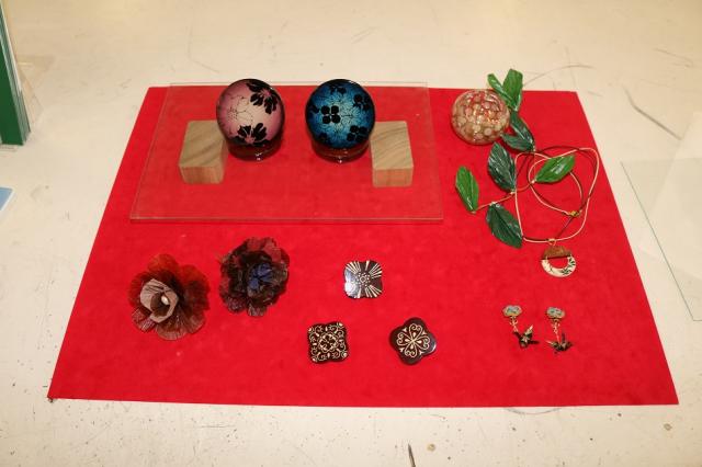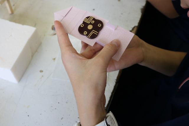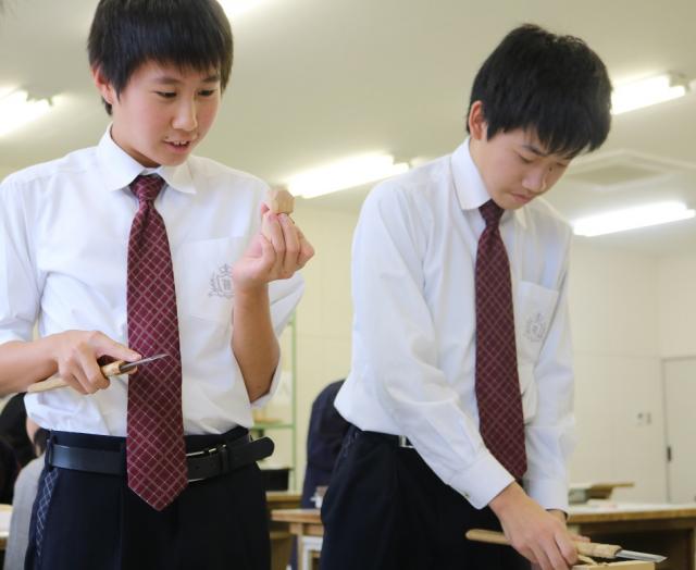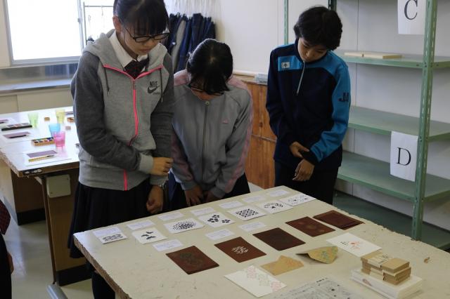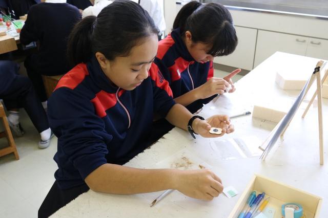 伊勢根付、伊勢一刀彫、漆芸、伊勢型紙の4講座を行いました。会場にはそれぞれの伝統工芸についての歴史や製造工程のパネル展示があり、実物の作品も持ってきていただきました。講師の先生方の教え方が素晴らしく、生徒たちは、みるみる自分たちの作品に磨きをかけていました。集中しつつも、楽しく体験しており、出来上がった作品を友達と見せ合う姿は、充実感に溢れていました。