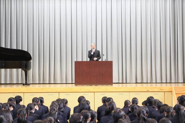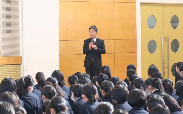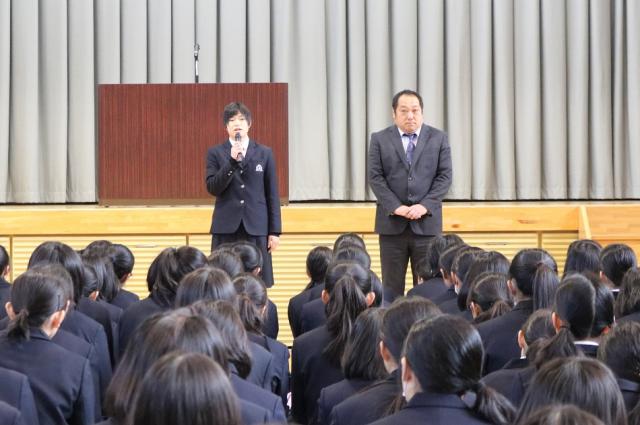 1月8日(火)に3学期の始業式が行われました。初めに、高校女子バレー部より春高バレー応援のお礼の言葉がありました。その後、校長訓辞、校歌斉唱、伝達表彰を行い、各クラスで新年最初のHRがありました。伝達表彰は以下の通りです。