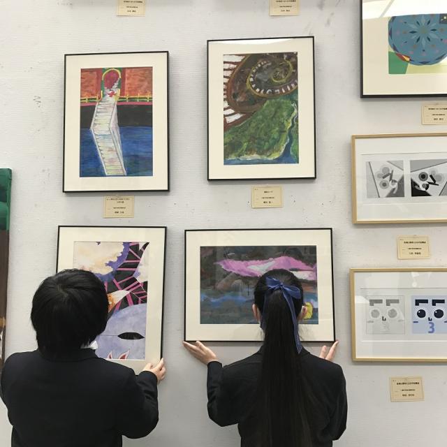 三重県下の私学が合同で行う展覧会で、他校の生徒から刺激を受けながら、展覧会を楽しみました。搬入作業に参加した生徒たちは、美術館のバックヤードに入ることができたり、作品の運搬のための大きなエレベーターを使ってみたりと、貴重な体験をすることができました。