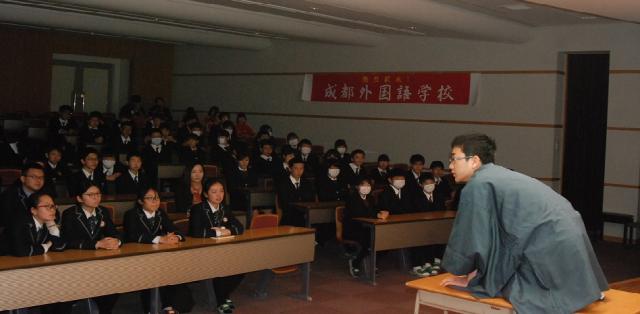 本校は国際教育の一環として2009年より毎年中国からの留学生を一年間受け入れ、2015年からは四川省成都市にあります成都外国語学校からの留学生を三年間続けて受け入れてきました。本校とのつながりが強くなり、昨年11月には姉妹校提携を結ぶに至りました。