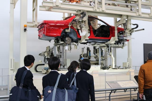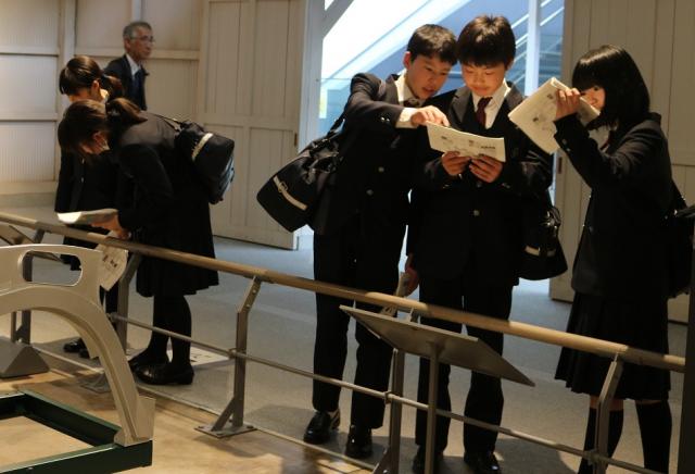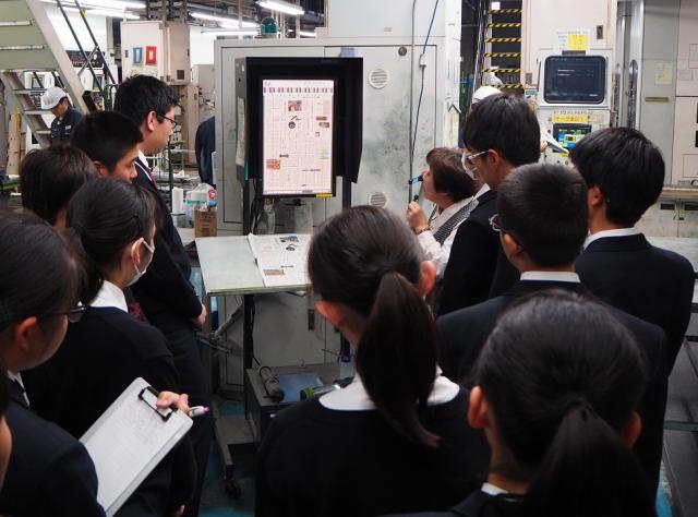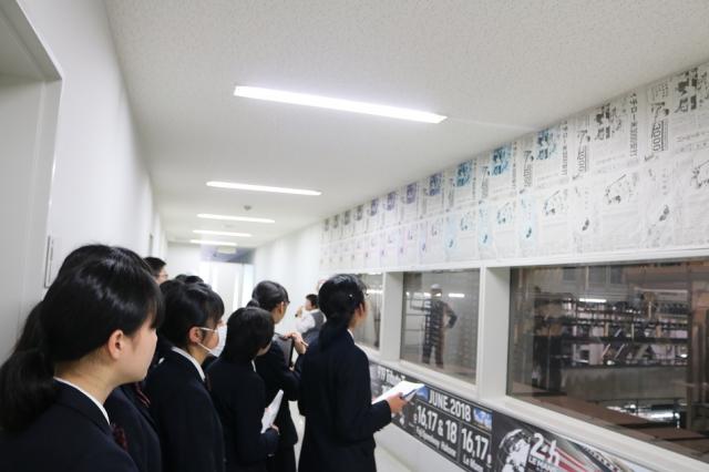 トヨタテクノミュージアムでは織機の歴史や車の製造の過程を、実際に稼働する機械を見て「体感」することができました。さまざまな構造をした織機に真剣に見入っている姿や、身近な車の製造の様子や車のしくみを何度も見返している生徒など、みんな興味津々のようでした。また、朝日プリンテックでは送られてきたデータが紙面に印刷されるまでの工程を小学校のときに体験した版画と比較しながら説明していただきました。印刷過程の見学では高速で動く輪転機や4色刷りのカラー印刷の仕組みなど、わかりやすく説明してくださいました。熱心に職員の方の説明を聞きメモを取る姿があり、いつもに増して深い学びができた1日でした。