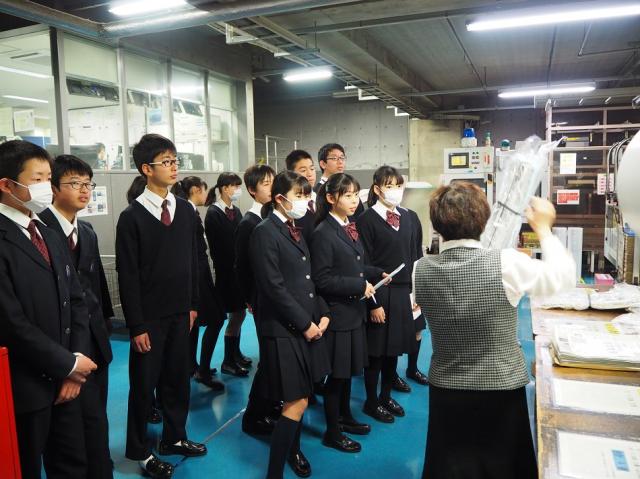 2年生が進路指導のキャリア教育の一環として、社会見学を行いました。2クラスずつに分かれ、2月20日(水)と21日(木)に、名古屋市の「トヨタテクノミュージアム 産業技術記念館」と北名古屋市の朝日新聞の印刷をしている「朝日プリンテック 名古屋工場」を見学してきました。