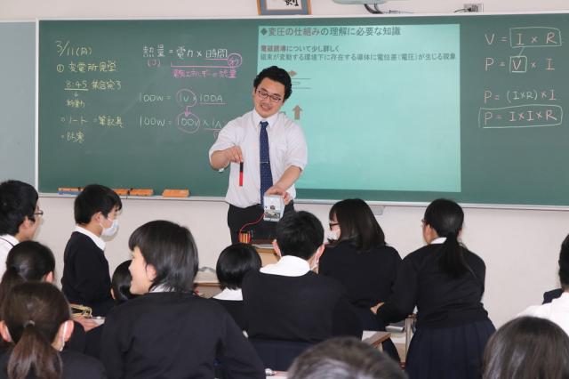 3月8日〜12日にかけて、中部電力の皆さんのご協力のもと、学校に隣接する中部電力南勢変電所についての理科特別授業を行いました。変電、送電に関わる事前授業、変電所の見学、最後には、まとめとして中部電力の方に講義をして頂きました。