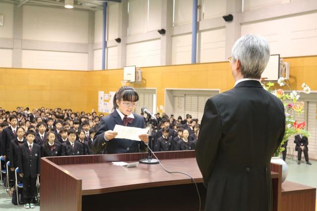 4月6日(土)127名の新入生を迎えて、第58回入学式が行われました。校長先生が新入生に向けて、「克己」という言葉を送り、仲間とともに歩み、そして自分に打ち克ってほしいと激励して下さいました。凛とした空気の中、真新しい制服に身を包んだ新入生たちは、緊張した面持ちでこれから始まる三重中学校の生活に気持ちを新たにしていました。