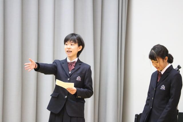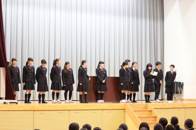任命式では、生徒会役員が学校長から任命書を授与され、各役員から今後の抱負を述べました。