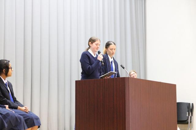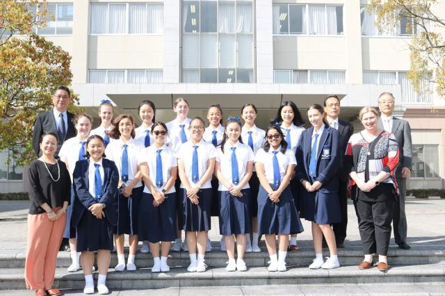 オーストラリアの2つの姉妹校と交流を続けています。4月11日(木)にそのうちの1つ、Brisbane Girls' Grammar Schoolから14名の短期留学生を迎えました。31年前から始まった相互交流は近年ますます充実し、今年は10日間の滞在中に茶道体験や地域学習、元号についての講義などが計画されています。