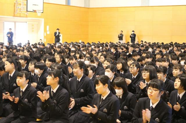 ![]() 拍手で歓迎する生徒 |