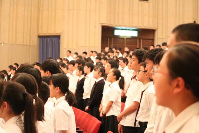 アンコールでは、三重高等学校校歌・三重中学校校歌のオーケストラアレンジが準備され、オーケストラとともに校歌が斉唱されました。格調高く演奏される、いつもと違う校歌に生徒たちは背筋が伸びる思いがあったのか、いつも以上に美しい校歌となりました。
