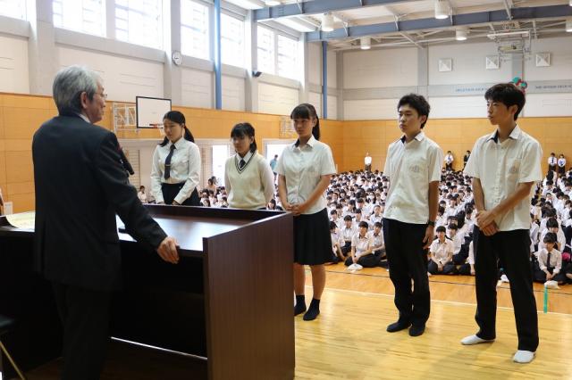 まず初めに校長先生から、ルールを守ることの大切さについてのお話があり、生徒達は自分を振り返りながら聞き入っていました。