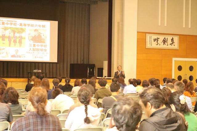 説明会では学校紹介DVDや、三重中学・高校ダンス部出演のCM動画を上映したり、今年の入試についての説明が行われました。