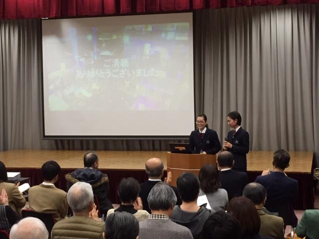 12月22日に松阪市産業振興センターにて「松阪市国際フォーラム」が行われ、本校を代表して3年生の2名がオーストラリア短期留学の説明を行いました。姉妹校のAnglican Church Grammar School(男子校)、Brisbane Girls\' Grammar School(女子高)の授業の様子やホストファミリーでの体験などをパワーポイントを使って発表しました。それぞれの場面に具体的な説明や感想、学んだことなどを織り交ぜた説明には好評が多数寄せられました。