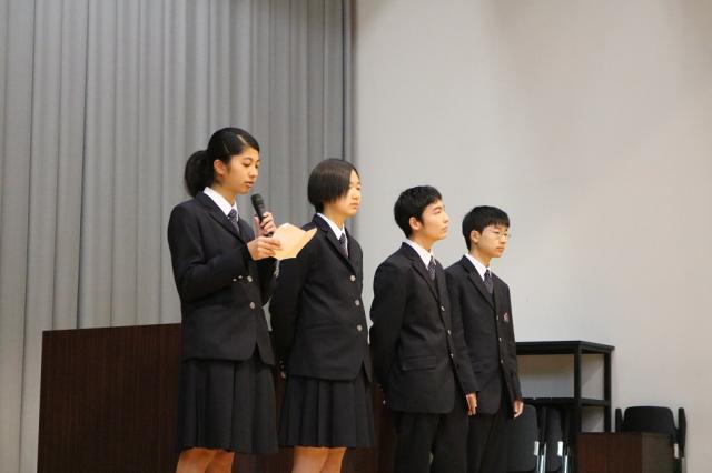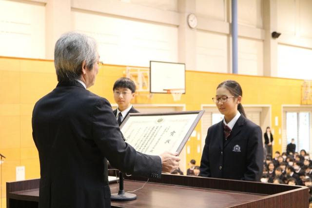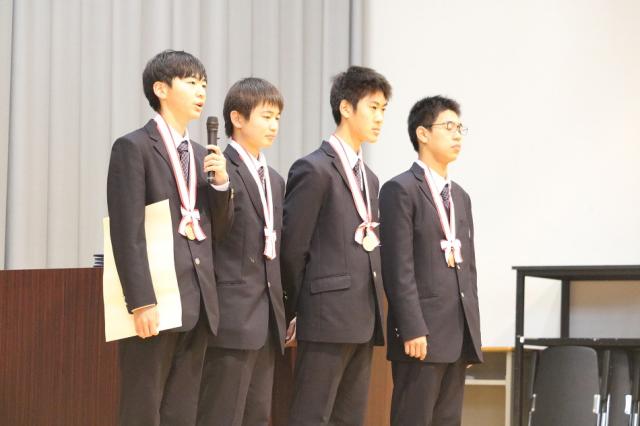 伝達表彰の後は、ハーバード模擬国連に参加する4年生、5年生の生徒の壮行会が行われました。生徒は模擬国連についての説明をしっかりと語ってくれました。4名の生徒の活躍に期待しています。
