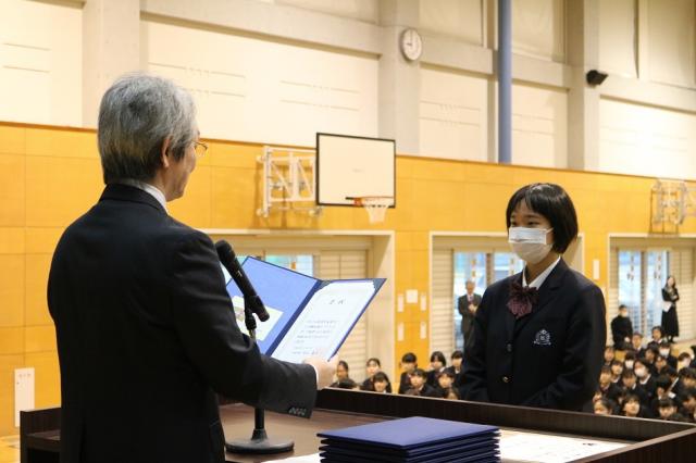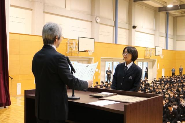 1月8日(水)に始業式が行われました。はじめに高校バレー部、高校弓道部の大会報告がありました。