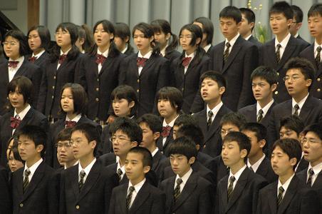 卒業生が感謝の気持ちを込めて「瑠璃色の地球」を合唱しました