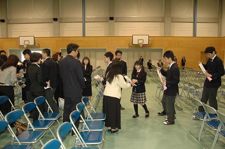 保護者の皆さんに一人ひとりが感謝の花束を贈りました
