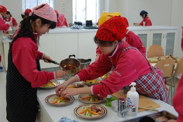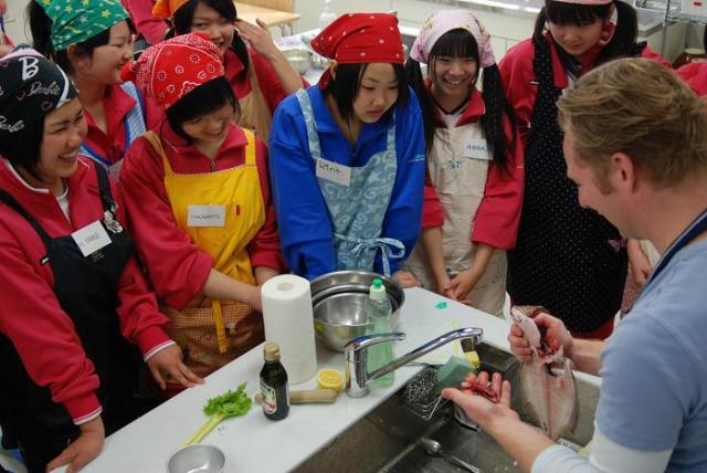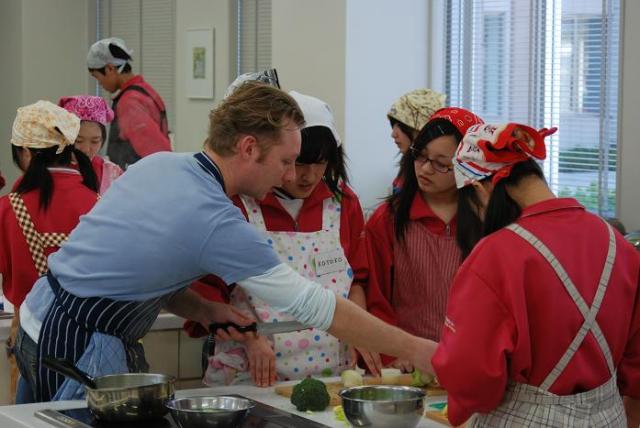 3月24日(火)に、家庭科と英語科が合同で、特別授業「英語でCooking」を開催しました。当日は、アムステルダムのホテルでフランス料理を担当し、また、シドニーオリンピックの選手村でも料理を担当したPim Wamelinkさんを迎えて料理を作りました。