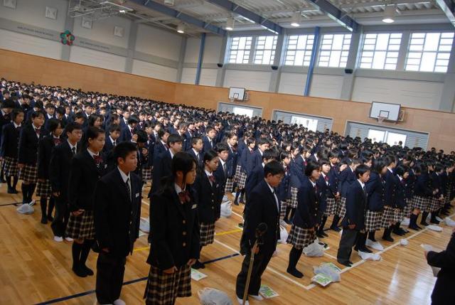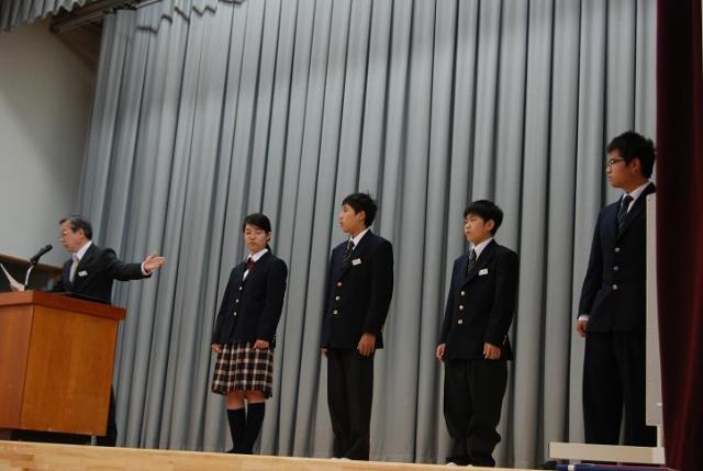 4月8日(水) 平成21年度前期の始業式・対面式が行われました。6年制・Cコースの中高生920名が一同に会しました。始業式に先立って、中学2年生への3名の海外からの編入生と高校2年生へのボリビアからの留学生が紹介されました。この4人の新しい仲間と、新入生140名を迎え、新しい年が始まりました。新入生と在校生の代表挨拶による対面式のあと、作文コンクールとソフトテニスの全国大会での入賞者の伝達表彰が行われました。