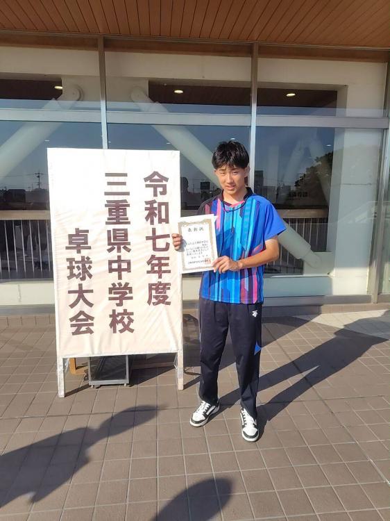 7月31日(木)にAGF鈴鹿体育館にて卓球(個人戦)の県大会が行われました。3年B組の山口純希君が出場しました。ベスト16に入れば東海大会出場が決まるこの大会、いつも通りのプレーで勝ち進み見事ベスト8に入ることが出来ました。 東海大会は8月7日(木)に愛知県豊田市で行われ、1つでも多く勝ち抜けるように練習を頑張ります。