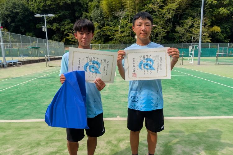 8月23日(土)に令和七年度 松阪市長杯 兼 松阪市中学生新人ソフトテニス選手権大会(男子の部)が中部台テニスコートで行われました。 森川・辻ペアが第3位入賞し、10月4日に行われる三重県中学生新人ソフトテニス選手権大会へ出場します。 1年生は初めての大会で緊張していましたが、一回戦を突破するなど入賞には届かなかったですが、頑張っていました。