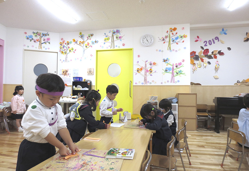 朝8時から送迎バス到着時刻までと、保育終了時から18時まで、預かり保育を実施しています。おうちにいるような雰囲気の中、異年齢の子ども達が、一緒におやつをいただいたり、保育室や戸外での遊びを楽しんだりしています。
