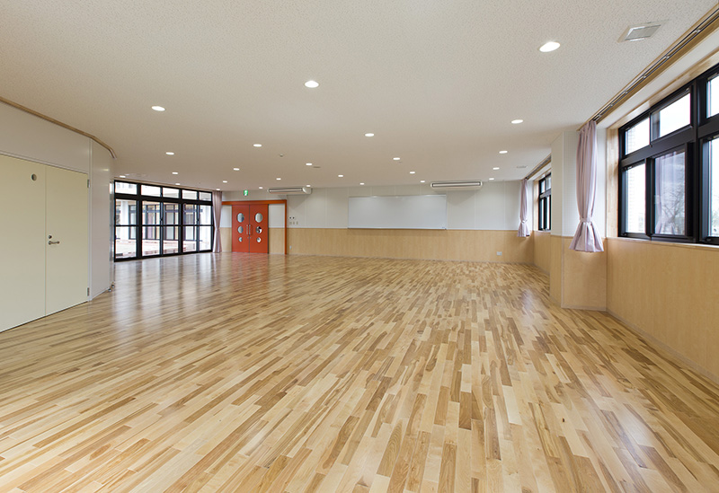 楽器庫を備え、合奏やマーチング、楽器遊びなどをしたり、ダンスやゲームなど、様々な目的で使用できるホールです。