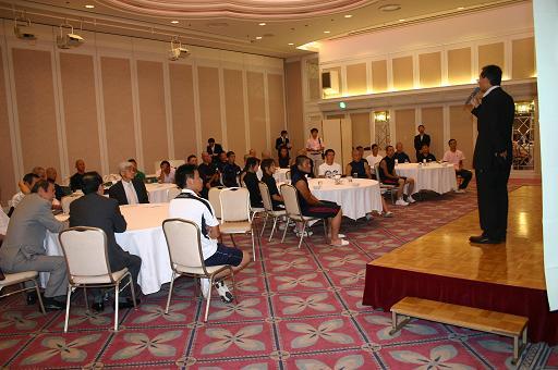 今日(8月6日)の練習は、甲子園近くにある西宮市の津門中央公園野球場で行いました。終了後、ホテルに帰り、洗濯とシャワー等の時間、そして、午後5時から6時30分までは、勉強時間でした。今日は午後7時から、大阪の三重県人会と兵庫の三重県人会の合同の激励会がありました。その後は、夕食とミーティング、そして勉強時間となりました。