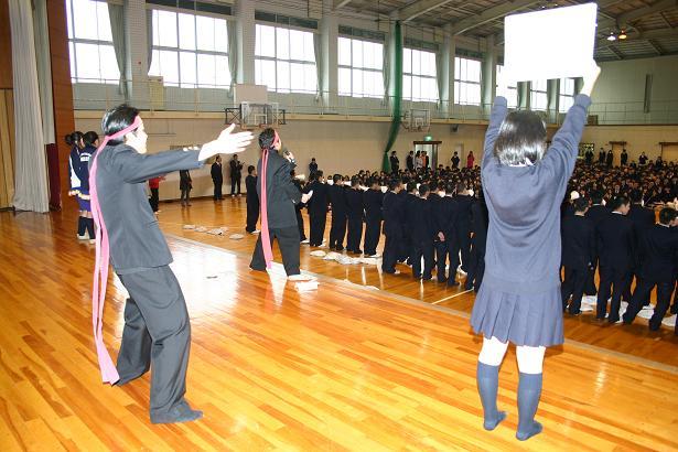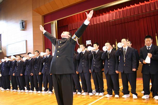 3月15日(月) 壮行会の後、応援練習が行われました。応援団のリードで野球部員が前に立って進められました。ブラスバンドによる演奏をバックに三重高オリジナルのリズミカルな応援が繰り広げられました。甲子園が楽しみです。