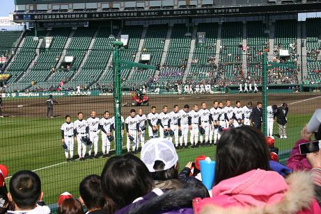 1回戦のとは打って変わった好天のもと、2回戦に臨みました。相手は東京都地区1位の強豪、帝京高校。18年前準々決勝で対戦したときには2−3で惜敗しています。そのときのお返しをと選手の意気込みもひとしおです。