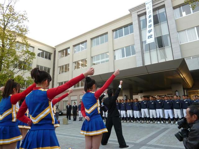 昨年創立50周年を迎えた三重高等学校の校訓は「真剣味」です。その校訓のもとで私たち生徒はスポーツと学業の両立を目指し、毎日を過ごしています。本校には長い伝統に支えられたクラブが多数ありますが、中でも硬式野球部は学校創立と同時に創部された歴史あるクラブです。甲子園への出場は春夏合わせて20回を数え、優勝1回、ベスト8が4回という輝かしい実績を残しています。今回の出場は選抜大会では11回目の出場になり、県内はもちろん、全国的にもその名を馳せています。部員は「練習も試合のつもりで」をモットーに、真剣で厳しい練習を日々重ねています。誰もが「今年のチームはチームワークがよい」と語ることから、甲子園でもチームワークの良さを充分に発揮してくれると信じています。