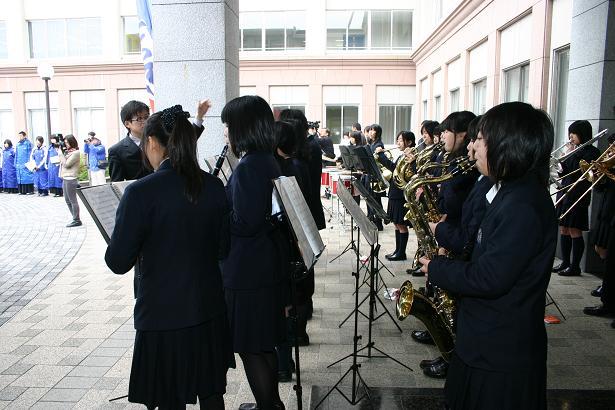 昨日より降り続いた雨も上がった3月18日(日)、選抜高等学校野球大会に出場する野球部員の出発式が三重高校玄関前で盛大に行われました。