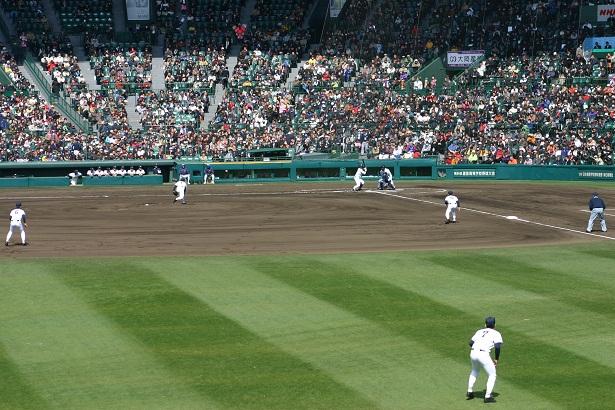 開会式と試合を合わせ見ることができる大会初日、関西では「春はセンバツから」との言葉が似合う開幕でした。開会式が終わり、7分間のノックが始まると雰囲気が一変。「静」から「動」へ。大きな声を掛け合い、機敏にボールを追う姿が見られました。「追う、捕る、投げる」の一連の動作が流れるように進み、応援席には期待が膨らみました。